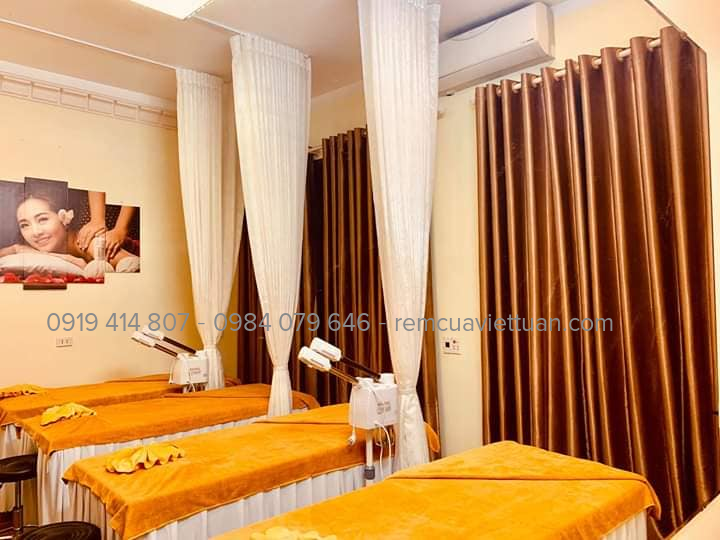 Rèm spa - Màn spa: Những mẫu rèm spa đẹp tại tphcm, chúng ta phải kể đến đầu tiên là rèm voan (voan trơn, voan thêu, voan in..), rèm vải, rèm kim tuyến... Ngoài việc giúp tạo nên một không gian riêng tư, yên tĩnh, mang lại cảm giác thư giãn cho căn phòng. Những bộ rèm cửa spa còn giúp không gian spa thêm ấn tượng, độc đáo, khác biệt và tạo dấu ấn sâu sắc trong tâm trí khách hàng.